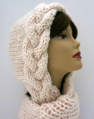 The Snow Goddess Bonnet is the third in my series of Snow Creations and it is sure to please the fashion diva. It is knit with super bulky yarn and has many attractive design elements. A wide braid frames the face with style. The braid flows into luscious long ties which can be worn loose, tied or wrapped around the neck for added warmth. The bonnet back has an elusive yet eye-catching spiral decrease pattern. The Snow Goddess is an easy knit and an easy to wear fashion accessory.