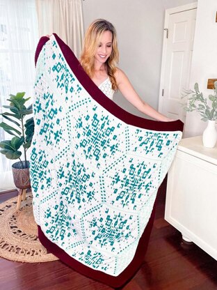 Yarn: WeCrochet Brava 100% premium acrylic, 218 yds/100g Colorways: White (10 balls) Wine (3 balls) Marina (5 balls) Mint (2 balls) Total Yardage is 3,700