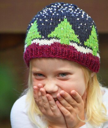 Warm your loved ones on crisp winter evenings with a hat that celebrates the beauty of snow. This hat can be a festive part of Christmas time, but the sophisticated design with its not-quite Christmas colors will look beautiful all winter long.