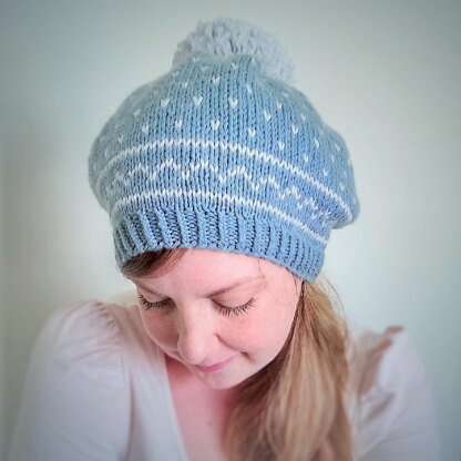 This soft, oversized beret is an ode to the magic of an idealised winter world. Airy colourwork evokes the delicate fall of snowflakes, and a hazy colour palette is reminiscent of the subtle, blue-tinted light that seeps through the windows when snow is banked high outside. In the depths of winter, a little woolly magic can lift even the most snowed-under spirits. I hope this sweet, quick beret is as fun for you to knit as it was for me! Designed especially for those new to Fair Isle knitting (or more experienced knitters looking for a quick and satisfying knit), Snowlight is knit seamlessly from the brim up, and is best worked in a bouncy pure wool yarn.