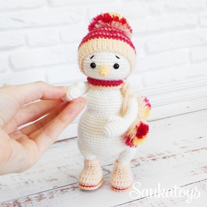Yarn: You can use any yarn that is comfortable and/or suitable for you. I used: «Slonim» yarn (wool/acrylic, 50g ~ 220m, Belarus). Colors – white, dark crimson, cream, yellow. Black yarn for embroidering eyebrows. Pink yarn for embroidering cheeks.