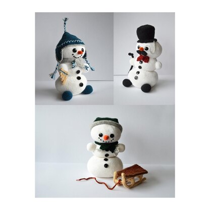 This set contains the following patterns: - Peruvian Snowman, with a panflute - Snowman Like A Sir, with a fancy tophat - Snowman with Sled, with a wooden sled Needed materials to make this item: - crochet hook, size G (6) / 4.0mm - yarn type: light worsted weight / DK - black buttons - tapestry/sewing needle - fiberfill Needed skills to make this item: - magic ring - chain stitches - slip stitches - single crochet - double crochet - increasing and decreasing - basic sewing skills - basic embroidery skills