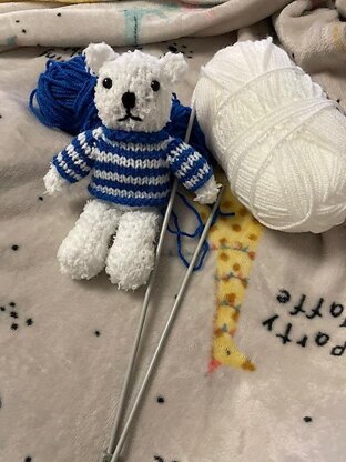 Learn to knit your very own Snowy teddy bear toy.