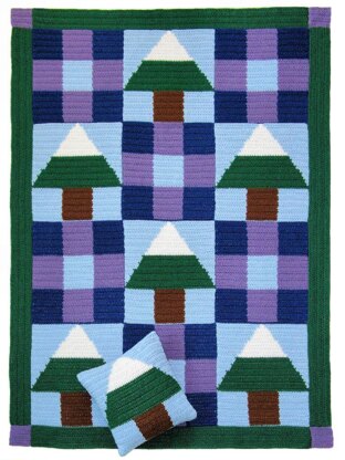 Patterned after popular patchwork quilts, this afghan and pillow combine the beauty of a quilt with the softness of crochet! Easy to crochet 12 squares (6 patchwork and 6 pines), instructions include both line by line and color change graphs. Crocheted with worsted weight yarns, afghan is 50 inches (127 cm) wide x 68 inches (173 cm) high and pillow fits standard 14 inch (36 cm) pillow form.