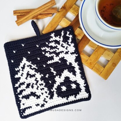 This tapestry crochet Snowy Winter Potholder is part of my "A Year of Potholders" collection, with 15 tapestry crochet potholder patterns for the entire year.