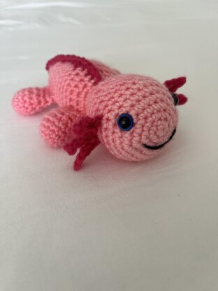 Snugglotl the Axolotl is a beginner-friendly amigurumi pattern designed with minimal sewing in mind. The body and head are worked as one piece, and the ridge and gills are added directly to the crocheted base.