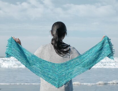 SOAR Scarf is a shallow V-shaped scarf that can be wrapped around the neck generously, in a bandana/ kerchief style. It is embellished with picot and twisted stitch details. The gentle shaping and beautiful details make for a stylish and practical accessory in your wardrobe. You can choose to knit your Soar Scarf in fingering, sport or DK weight yarns.