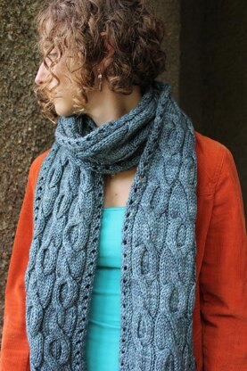 Soda Water is a giant cozy scarf featuring offset columns of big bold cables and just a bit of lace. I had been waiting to use these cables for a long time now - too bold for a garment, but perfect on an accessory. As soon as I swatched them on the Plucky Knitter Traveler Aran, I knew they had to be featured on a long, wooly scarf. I lengthened them just a tad, so they are not perfect circles and the oval shape adds to the feeling of length and drape here. I have used 5.5mm needles for an extra bit of drape and the silk content in the yarn lends both sheen and softness to the scarf. You can easily adjust length or width of this pattern, and directions are included. Sample is pictured in The Plucky Knitter Traveler Aran in Skies of November. Alternative yarn suggestions are provided, always check your gauge especially if using an alternative yarn to the one shown.