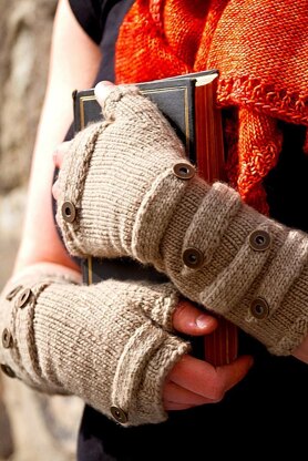 Sokol mitts are knit in the round from the bottom up. The main part of the mitts are knit in plain stockinette, with just a few rounds of ribbing along the edges. The buckles are added at the end by turning the mitts 90º/270º and picking up stitches along the sides. They are knit flat across the width of the mitts and decreases are worked to form the tips. The tip of each buckle is attached with a button.