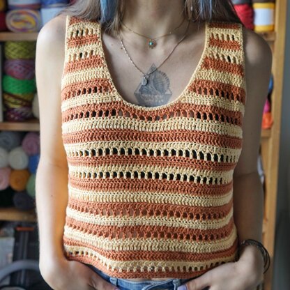 A stylish striped tank top that's set to become your new favorite piece in your handmade wardrobe! Practical and oh-so-comfy, this versatile top pairs perfectly with everything from shorts and jeans to long skirts.