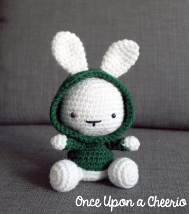 There's some bunny in the hood! Hoodies are a staple in my wardrobe, so of course they would be with my amigurumi bunnies as well! Meet the latest addition to my amigurumi bunny family. I hope you love hoodies as much as I do!