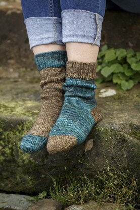 Contrasting heels, toes and cuffs give endless possibilities to these slouchy DK weight socks. These are perfect for quick gifts, warm and indulgent treats for yourself or a beginner wanting to learn about sock construction. They knit up pretty fast too which resulted in the perfect name- Soonly.