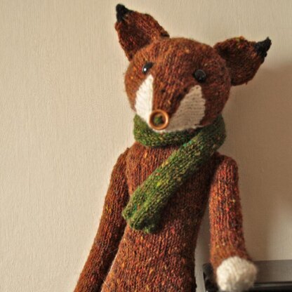 Mr. Fox is a gorgeous little man. Standing at approximately 15" tall, he is knitted mainly in the round, with the head pieces knitted flat. He is knitted in pieces and then seamed together.