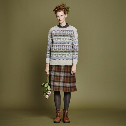 SORREL is a fairisle using the lighter pastel shades of Rowan Felted Tweed. Optional crochet trims may be added to the shoulders and sleeves.