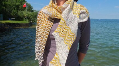 Knit sideways, on the bias, and featuring wavy stripes, Soundwave is a unique asymmetrical shawl with a modern look and shape. Fun to knit and so easy to wear, you’ll want to make more than one of this go-to accessory with your favourite yarns.