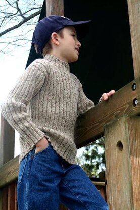 A DK wt. mock turtleneck with modified dropped shoulders and an all-over ribbing pattern will keep him looking neat all day. So comfortable that we can't guarantee he'll stay out of mischief!