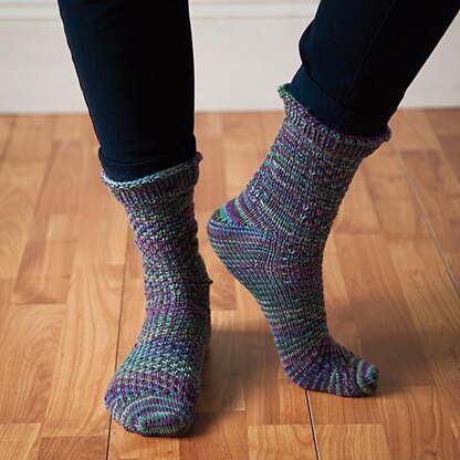 Whether your nickname is already “twinkle toes” or you just want it to be, these socks have your name written all over them. The star-like slipped stitch pattern distributes colors in a textured way that works well with tonal, hand-painted, and speckle yarns.