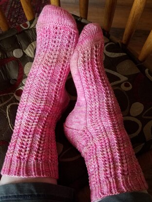 Charles Dickens created the charming Samuel Pickwick who was known for his circular spectacles and twinkling eyes. The Spectacle Rib Socks are a homage to the lovable Mr. Pickwick, recreating his circular spectacles with a bouncy, lace rib. As you may know (and I’m sure Samuel would agree) nothing is more pleasurable than slipping on a sock that stretches elegantly to fit your leg and foot. The Spectacle Rib Pattern is a very stretchy pattern based on a multiple of 7 stitches and worked over 3 rows. Easily memorized and a delight to wear. The sock is knit from the top down. Directions for the Spectacle Rib Pattern are written as well as charted. The amount of yarn needed is 375-420 yards depending upon size worked.