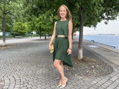 Materials: • 2.75 mm crochet hook • Approximately 1650(1785, 1980, 2180, 2400)(2640, 2905, 3200, 3520) metres of fingering weight yarn, sample done in LeRoo Cotton Bamboo/Linen in Envious • 3/4 inch elastic measuring 1 inch less than your natural waist measurement • Yarn needle • Needle & thread