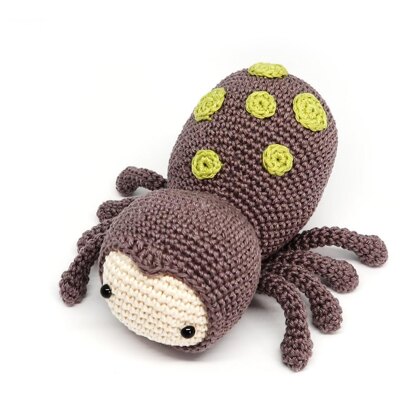 MEASUREMENTS With the yarns used in this project, the spider measures 9 cm (3.5 inch) tall, 14 cm (5.5 inch) wide and 15 cm long (5.9 inch).