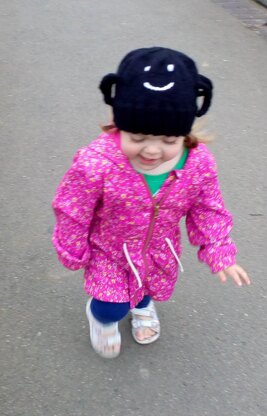 For some reason my daughter just loves spiders and we often have to go spider hunting (I am not so keen on spiders but try my best to hide this from her). For this reason I made her a spider hat which she loves. It is a nice comfortable fit and covers her ears to keep them warm.