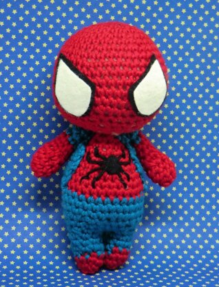 Spider-man Inspired by marvel Spider man Homecoming By Liz Ward – Amigurumi barmy Skill level: easy Time: 3-4 hours each Size: 12x7cm Tension: Tension is not critical for this amigurumi Available in UK abbreviations This is an instant download PDF crochet pattern for Spider-Man Basic crochet skills required. Pattern includes chain stitch, double crochet (UK), working in the round, increasing and decreasing. Printer friendly pattern includes photos and full written instructions to create a finished doll