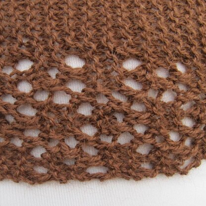 Worked from side to side in one piece, this shawl’s lace edging is worked as you go, which means when you cast off, you’re completely finished! The modern trapezoid shape will keep the piece on your neck or shoulders without any fidgeting or unsightly bunching, while the reversible nature of the fabric ensures that you’ll look chic from any angle. The circular lace motif is meant to be reminiscent of spinning wheels, and this pattern would be an excellent showcase for a beautiful skein of handspun yarn! The pattern includes instructions for modifying for length, allowing you to fully customize your shawl to make the most of every yard of your chosen yarn.