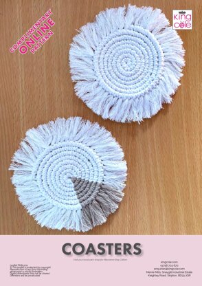Spiral Coaster Knotted in King Cole Macrame Recycled Cotton – PKAL1011 – Complimentary downloadable PDF Pattern est un modèle de Tricot Intermédiaire gratuit par King Cole, disponible au format PDF téléchargeable et comprend des instructions en Anglais. Super amusant à réaliser, ce modèle pourrait être votre prochaine œuvre d'art !