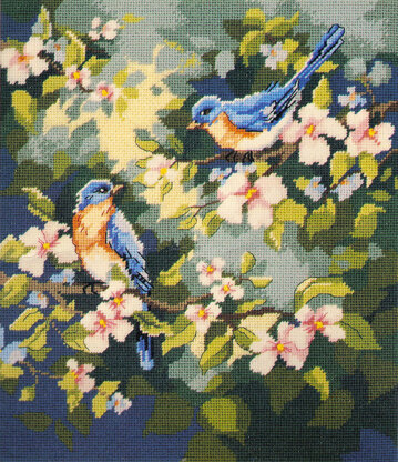 Designed by: Linda Gillum. Nothing says springtime like chirping birds! This vibrant pair of feathered friends rest happy on their cherry blossom tree. An accent piece that any bird lover will adore. The perfect housewarming gift, birthday gift, appreciation gift, and more.