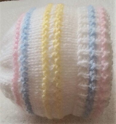 This cute little baby beanie is a written pattern worked flat on two needles.