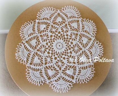This is a pattern for a medium size crochet doily, table topper, made with cotton thread size ten (such as Aunt Lydia's) and a steel hook 1.5 mm. There are 23 rounds, and the finished doily measures about 15 inches in diameter (across). Note that this doily has an odd number of repeats (nine to be exact), which makes it asymmetrical. The skill level is advanced beginner. It's not so much about difficult stitches (there aren't any really), but about being able to read each row very carefully and following the instructions. The pattern is written in English using the US crochet terminology. This pattern is my own design and cannot be redistributed. However, you have the permission to sell finished items made from this pattern.