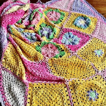 ABOUT Spring Flatlay was designed to honor the hashtag #natureflatlay that Jessica @VanillaLemonCake features in her IG feed and stories. Her flatlay style photos translate to floral granny squares placed thoughtfully in the layout of this decidedly Springy piece. Also, pink and yellow. Yes.