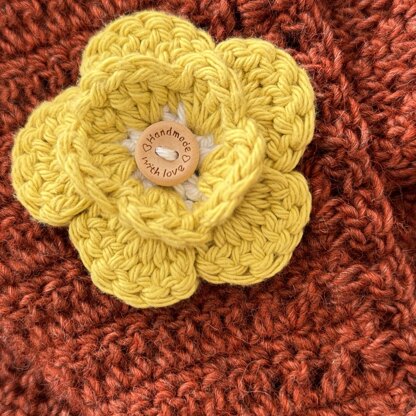 - Create this little flower in any yarn and hook that matches, have fun with it and create with 2ply up to Aran weight yarn and different colours.