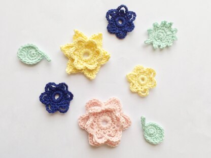 | One size only: | Double layered flowers are approx. 6cm diameter. Small flowers are approx. 4cm diameter. Each leaf is approx. 4.5cm long. |