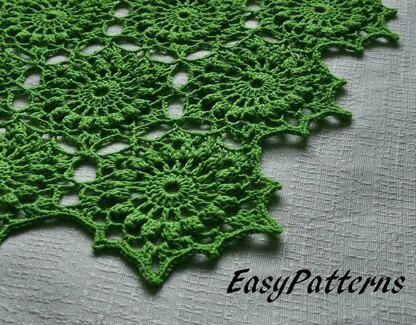Waiting for spring, I designed this shawl. I tested the main chart at FB asking people: is the pattern clear, easy, readable and so on. They were happy. As some of them asked about, I added step-by-step written description: how to join motifs. After working first motif, all other motifs are joined together while working round 4 of motif.So this pattern includes lots of charts, pictures and written description. I used 3.5 mm hook and green Drops Baby Merino yarn. You can use any yarn with similar yardage of your choice.To make the shawl bigger, play with number of motifs joined: you can add it at any place to one or two neighbouring motifs. Have a fun!