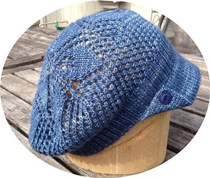 This slouchy newsboy cap has a delicious leaf pattern in lace, a nice elastic ribbing and a fun detail on the bill. It is knit entirely in one piece, only two ends to weave in.