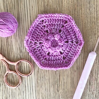 This pretty floral motif is worked in the round using 4ply cotton. Inspired by Spring blossom, this design uses bobble stitches to make each delicate three dimensional flower. Originally designed for Inside Crochet magazine issue 114, join the motifs to make a decorative bunting