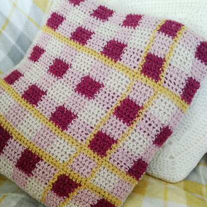 This on-trend plaid cushion is easy to make up using the chart for intarsia colour changes. There are written instructions for the assembly of the pillow.