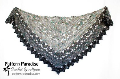 This shawl is a beautiful triangle shawl made with basic crochet stitches that combine to create, lace, filet crochet and scalloped sections and border! It is the perfect accessory to be worn as a traditional shawl, wrap, scarf or fashion piece!