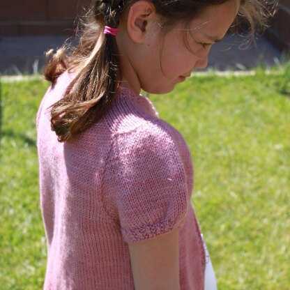 This frilly jacket is sure to please your little girl. It is knit from the top-down and includes puffed sleeves at the shoulders and gathers at the sleeve ribbing. The yoke is created using a modified version of the contiguous sleeve method. The button bands are picked up after the body of the jacket has been completed.