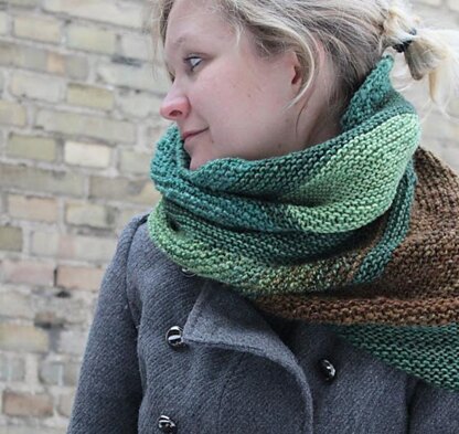 Squishy Short Rows form a garter stitch cowl, entirely without purling. It is worked in sections, that together form a geometric pattern that looks like the sections have been worked in different directions.