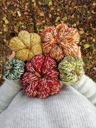 They're incredibly beginner friendly and fast to make - if you can knit and purl then you can make these pumpkins. With 3 strands of DK yarn held at once, they make an excellent scrap buster with whatever you have laying around your yarn pile!