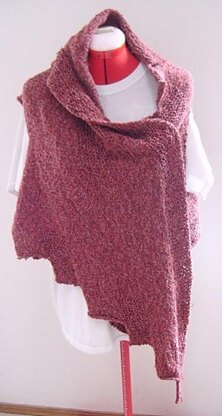 It is a one-piece, seamless wrap that can be worn multiple ways. Bind off 10 stitches at one end and cast-on 10 stitches at the other end. There are instructions for these three sizes; 36” – 38”, 40” – 42” and 44” – 46”. Any yarn and colour will be great for it.