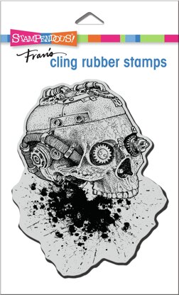 Premium quality precision trimmed rubber stamps that give you a beautiful image every time! Use with any acrylic block (sold separately). Simply remove the disposable acetate layer revealing the vinyl cling with printed image, press onto a block, align and stamp! Use any ink that can be used with traditional wood-mounted stamps and clean with wood-mounted stamp cleaner. This package contains Steampunk Skull: one cling rubber stamp on one 4.5x5.5 inch backing sheet. WARNING: Choking Hazard- small parts. Not for children under 3 years. Made in USA.
