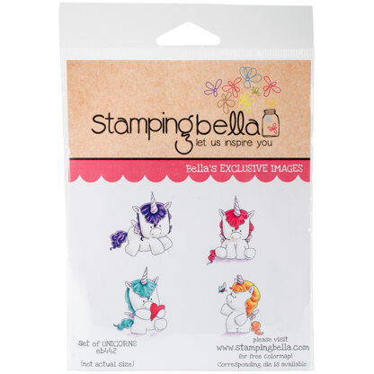 Stamping Bella-Cling Rubber Stamp. Adorable designs and high- quality rubber make these stamps must-haves for any stamper! This package contains Set Of Unicorns: four cling rubber stamps on one 5x3-3/4 inch backing sheet. Made in USA.