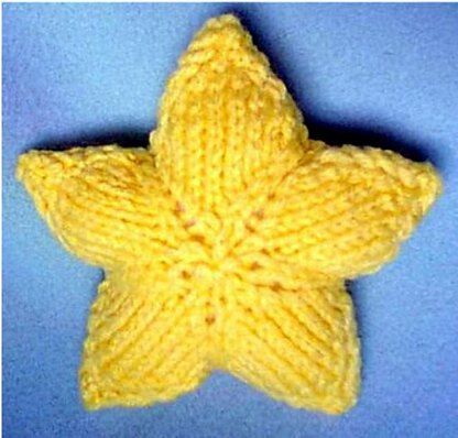 Star shown is stuffed but you can knit up a single star to hang on the Christmas tree! Pretty easy to knit, then sew together. For a a stuffed version, just make 2 star sides, sew together with pillow stuffing. Finished size is about 4½ inches. Uses worsted weight yarns, knitting needles US # 6. A nice ornament to hang on the tree, or as a package trim. Make a few for the neighbors too!