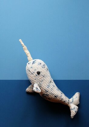 The moon is out, and Stargazer Narwhal is looking up at the night sky exploring the constellations. Now where was the one that looks like a narwhal again?.. The pattern is written in US crochet terms, with step by step photos to help along the way. The mouth is shaped when making the body, the tail is worked seamlessly with the body at the end. The toys is finished with subtle gold embroidery along the horn and a starry constellation on the back for a bit of sparkle - adding a star sign to the back would make it a lovely newborn gift. When made in DK weight cotton yarn and 3.5mm (E) hook the finished Narwhal is about 29cm/11inches tall from tip of the horn to the tail. You’ll need to know how to: make a magic ring work in a round single crochet increase/decrease invisible decrease chain stitch slip stitch