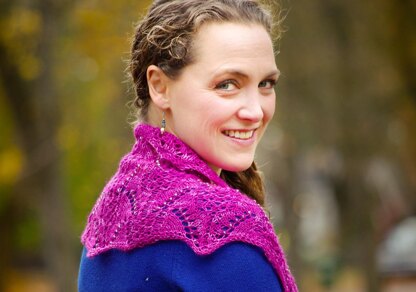 Like a delicate flower sparkling with droplets of the morning’s first dew, this gorgeous cowl has beads, lace, and mock cables. This one skein wonder is worked in the round from the bottom up and framed with simple borders of garter stitch.