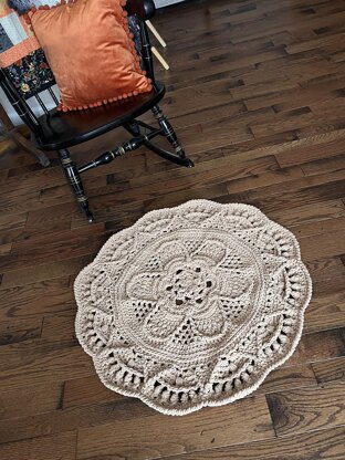 Pattern includes instructions for making as a rug with bulky yarn or as a doily/dreamcatcher using fingering, 3 ply or 4 ply.