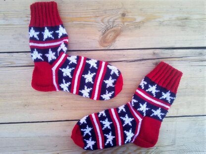 Yarn of white, blue and red colors; I used wool blend yarn, 390 m/100 g;